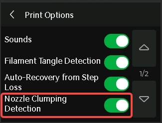 이러한 문제를 방지하기 위해, Bambu Lab A1 시리즈 프린터에는 노즐 클럼핑 감지 기능이 탑재되어 있다. 프린터가 노즐에 필라멘트가 감긴 것을 감지하면 자동으로 출력을 중단하고 사용자에게 알림을 띄워, 장비의 추가 손상을 예방할 수 있다.