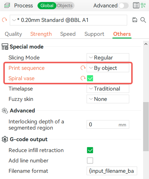 단색 출력일 경우에는 타임랩스 모드를 Smooth Mode로 설정하면 와이프 타워가 함께 생성된다.