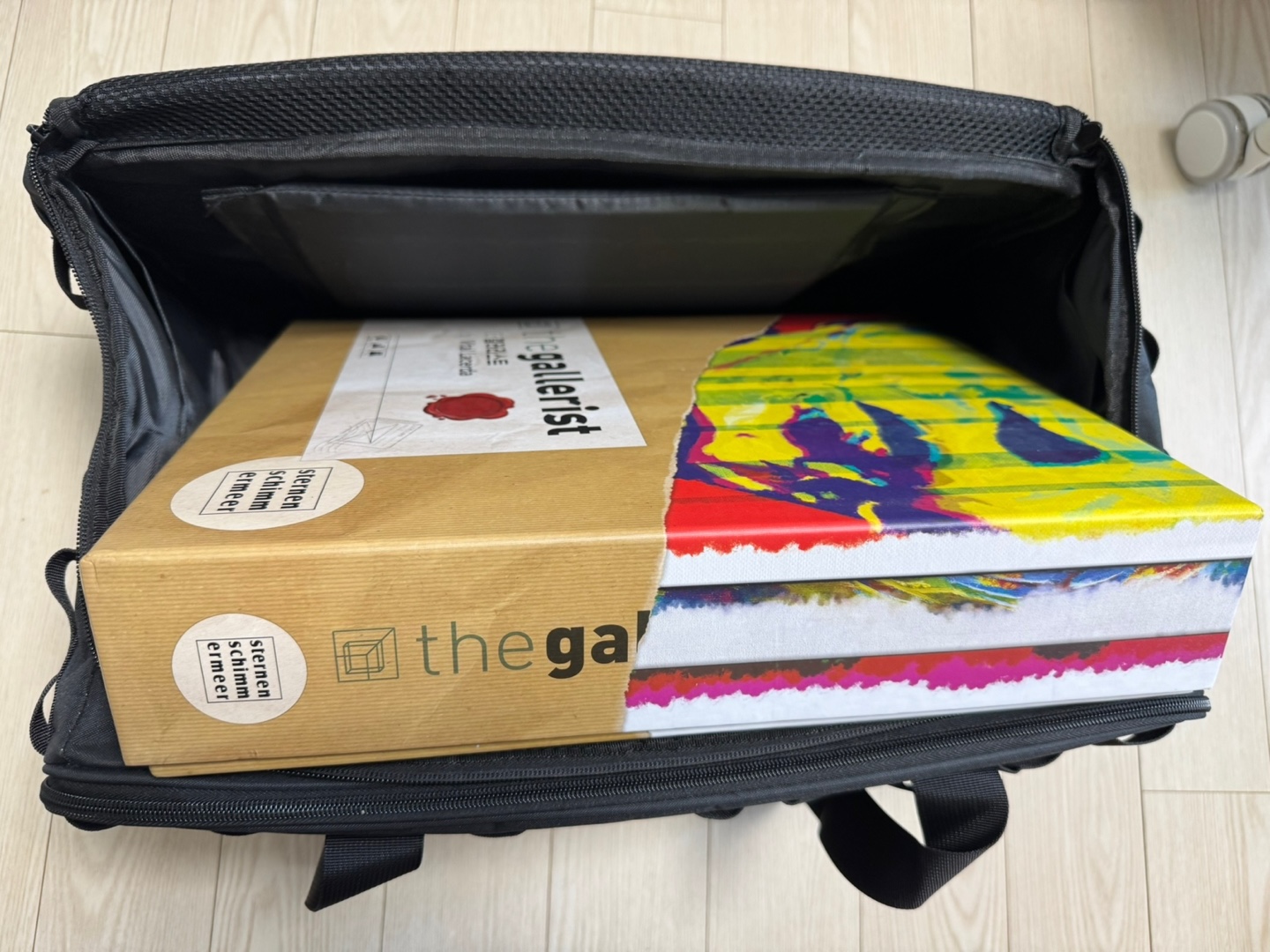예전 행사에서 받은 타포린백을 사용해서 들고다녔는데, 수납 공간이 아주 널널해서 들고다니기 용이했다.