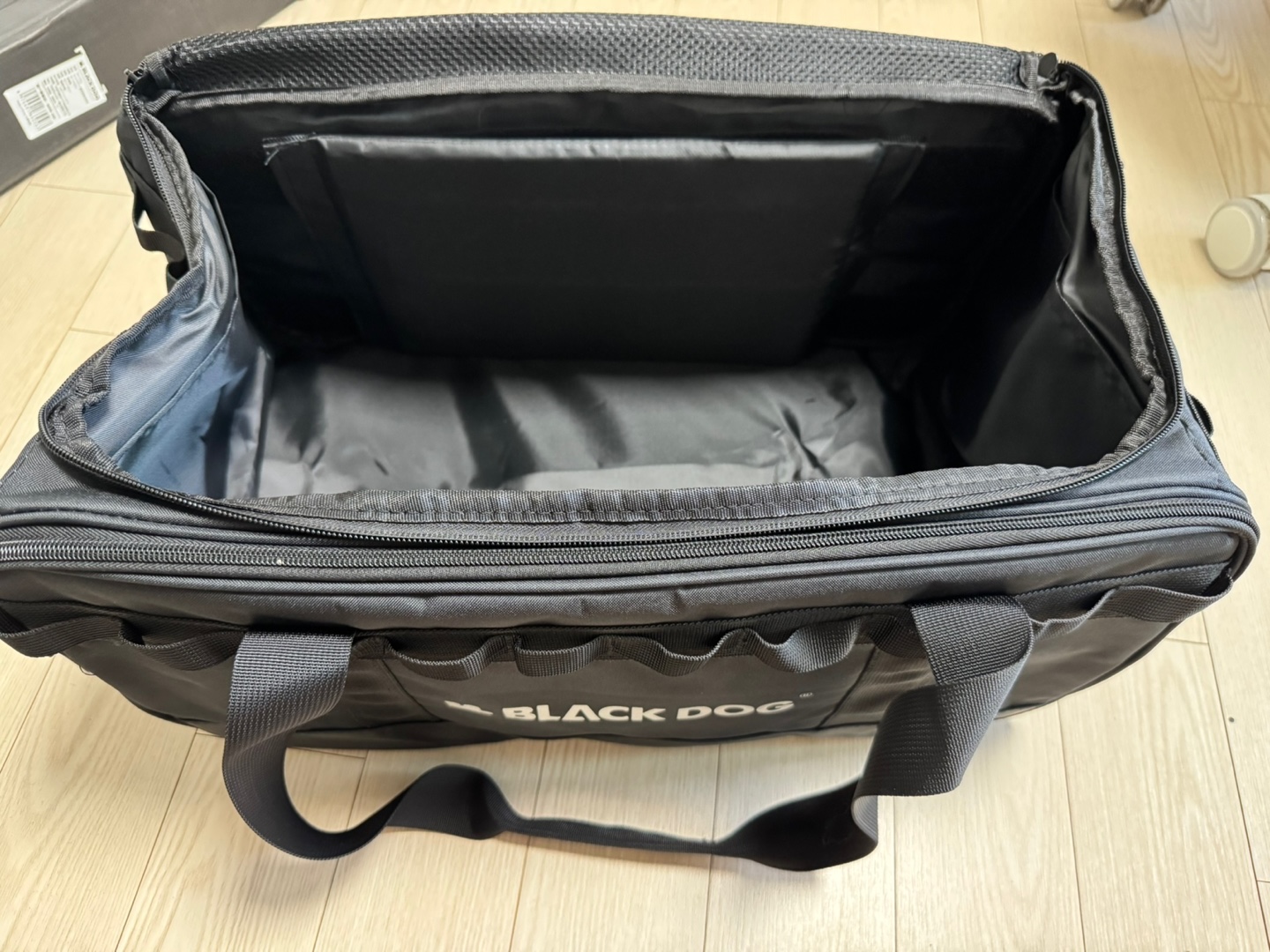 그러나 문제가 발생했는데, 타포린백 특성상 잡아주는 곳이 없기 떄문에, 트렁크에서 이리저리 움직이고, 떨어지고, 넘어지기 십상이었다.