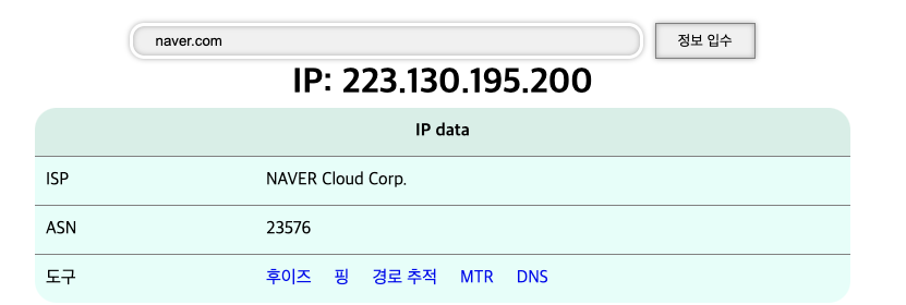 위의 예시로도 작성하였지만, 223.130.195.200 는 네이버의 IP 주소이다.