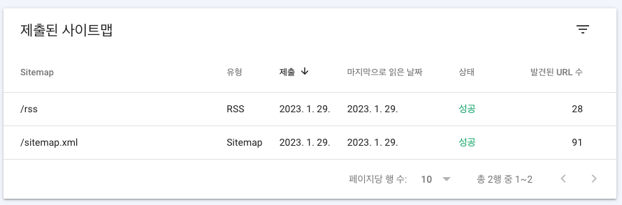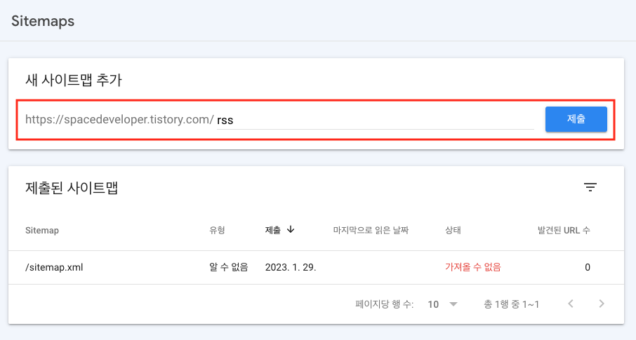 4) 구글 서치 콘솔 > sitemap 과 RSS 등록