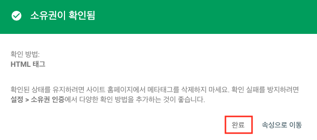7.소유권 확인 이 뜨면 정상적으로 등록된 것이다. 이후 완료 버튼 을 누른다.