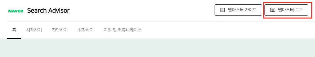 상단에 웹마스터 도구 버튼을 누르면, 검색 엔진에 등록할 수 있는 관리 페이지로 이동한다.
