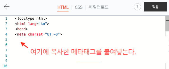 복사한 메타 태그를 등록하기 위한 단계이다.