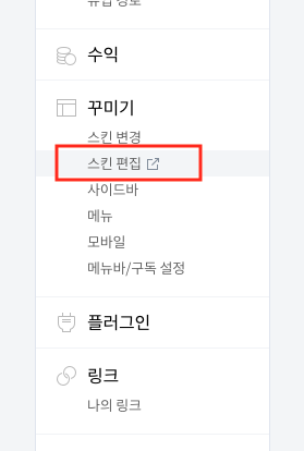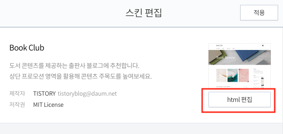 티스토리 관리 페이지 > 스킨 편집 > HTML 편집 페이지로 이동한다.