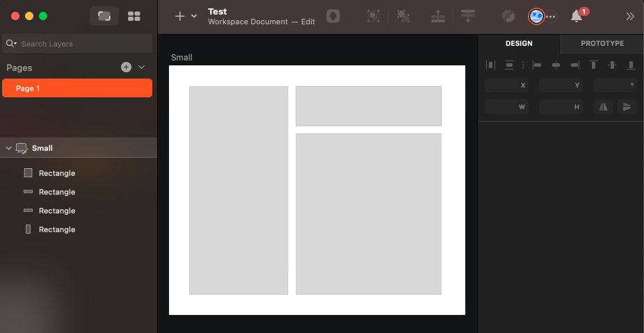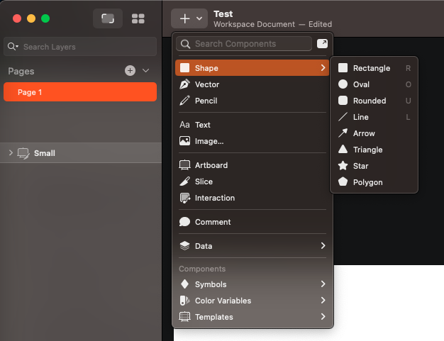 프로그램 상단 + 아이콘을 선택 후 shape > rectangle 을 선택하여 대략적인 UI 를 그린다.