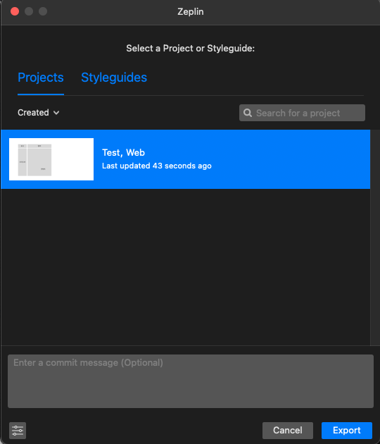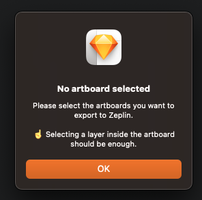 Please select the artboards you want to export to Zeplin.