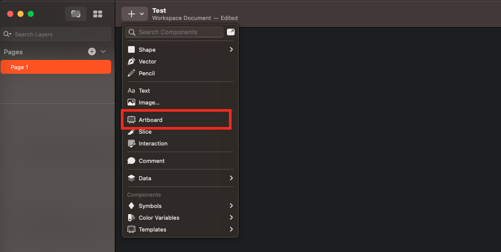 해당 버튼을 클릭하면 열리는 박스에서 Artboard 를 선택한다.