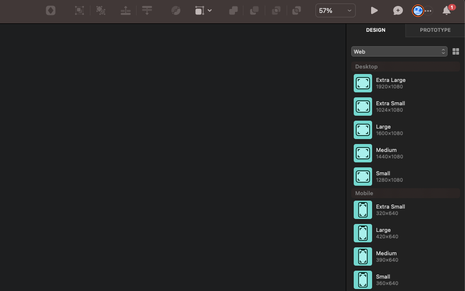 사용자가 직접 드래그해서 아트보드를 만들어도 되고, 우측 사이드바에 정의된 아트보드 사이즈를 선택해서 만들어도 된다.