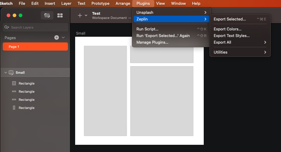 상단의 Plugins > Zeplin > Export Selected... 를 선택한다.